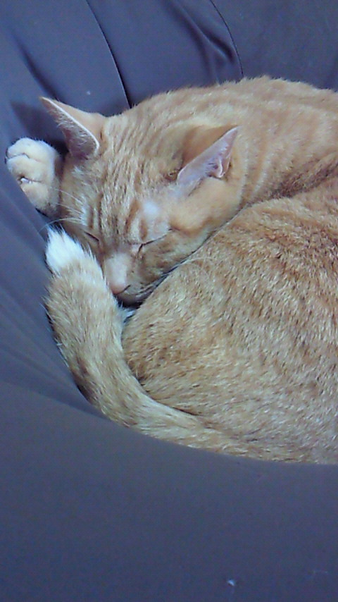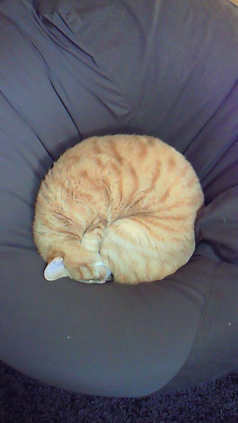 ちーさまはいつものお昼寝ポジションのビーズクッションを掘りほりしてスペースを確保し寝入ってました。