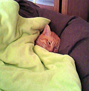 ビーズクッションのうえで寝ていたので、