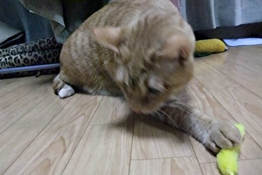 なぜねこじゃらしとは違う方向を見ながらも見事に摑まえているのかサッパリですが。