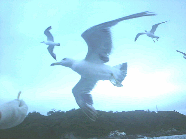 とりあえず五袋買って、片手いっぱいにえびせん掴んで上からかもめに叩きつけるように投げ付けてたら平行して飛んでたかもめがみんな一斉に鳴きながらえびせん目がけて下降して海に落ちたえびせん食べてまた飛び立つ姿が面白くて繰り返してたらすぐ無くなってしまったのでさらに買いました。