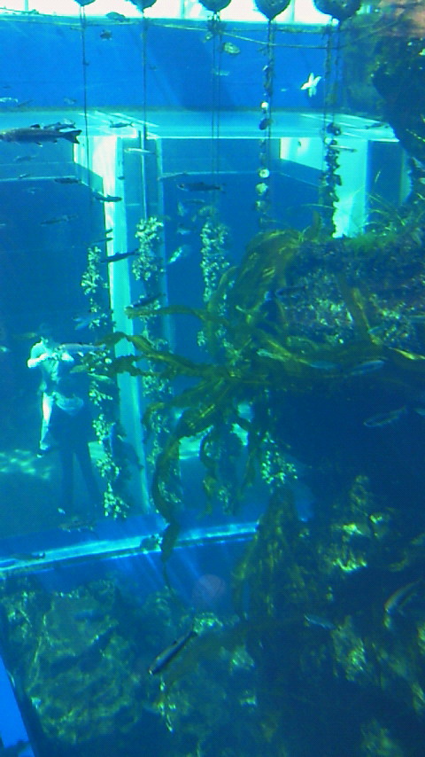 これは潮目の水槽をぐるっとまわって、したに降りてきたところから見た写真です。