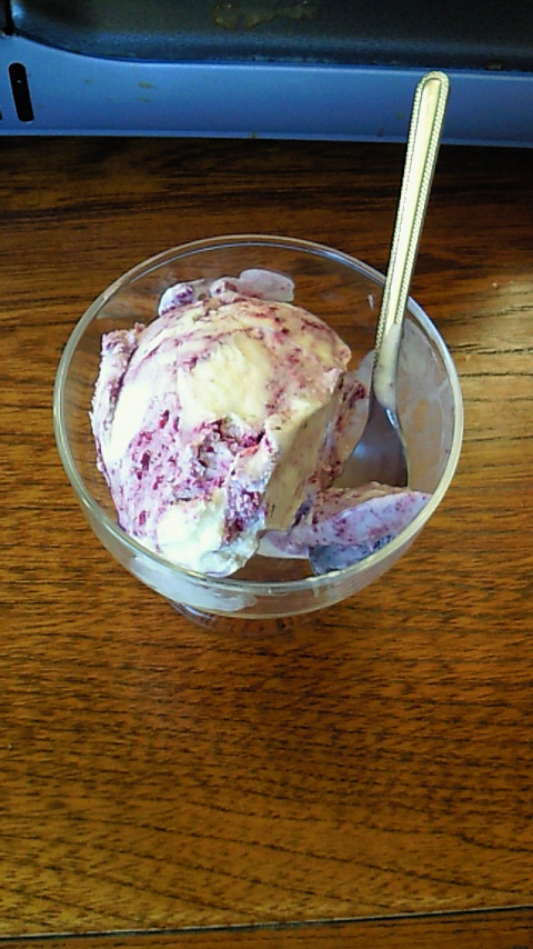 ブルーベリーがバニラアイスにかかってるのかなとおもったら練りこまれてましたね。