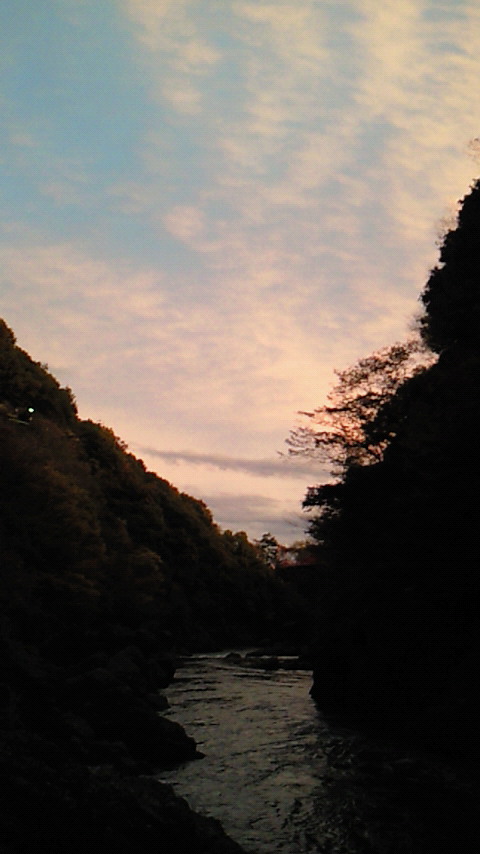 川の流れと岩に挟まれた石がゴロゴロ転がって窪みをつくったみたいな穴見たりしているうちに日が暮れて。