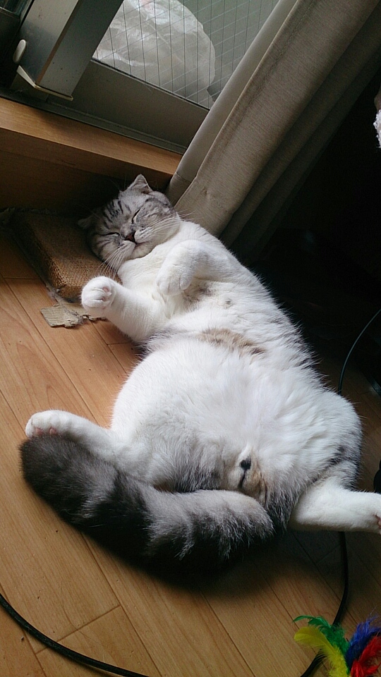 足おっぴろげて仰向けで眠る様はおっさんのようです。