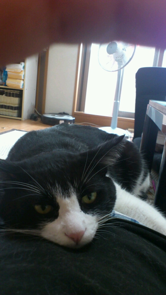 茶トラ猫ちーさまと黒白ハチワレ猫ゆうくんスコテッシュのぶのぶ