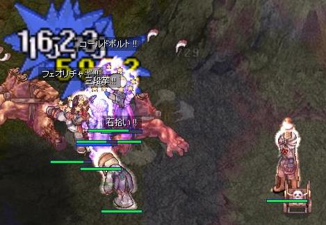 リーゼンくんは石投げしてタゲとって、あとは移る事ないようにひたすら殴り。